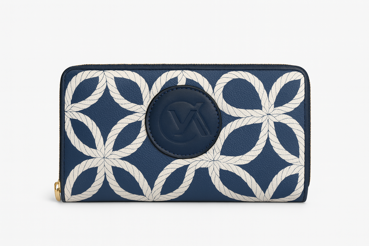 The VV Blue Wallet is spacious and stylish, featuring 10 card slots and 5 inner pockets for organization. Made from eco-friendly materials in Greece, it also includes a flap on the side, an inner compartment with 5 slots and a zip pocket. Measuring at 11x19x4 cm it's the perfect blend of fashion and sustainability.